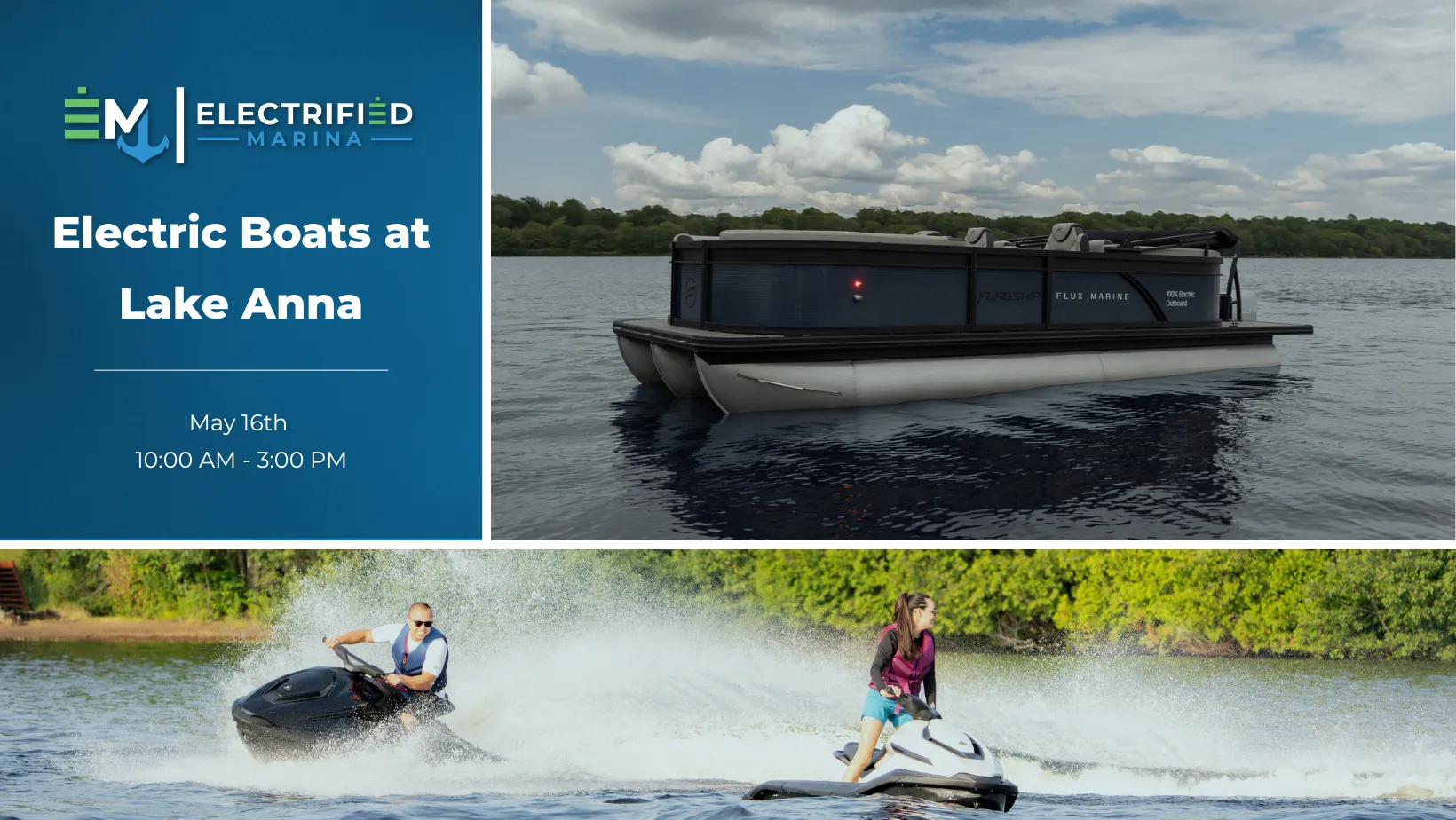 Electrified Marina and Mid-Atlantic Dock Builders are bringing the next generation of watercraft to Mineral, VA, for an electric demo event. We are offering personalized test rides on the industry-leading Flux Marine Flagship Discover, the electric tritoon that proves you don't have to sacrifice speed for sustainability. Plus, if you're interested in something more personal, experience the thrill of the Taiga Orca electric jet ski firsthand. Space is limited for demo rides—join us at the lake and discover why people are switching to electric.